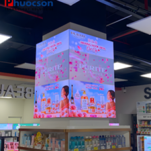 Điểm độc đáo nhất của dự án là việc "khoác áo công nghệ" cho 17 trụ cột bê tông trong siêu thị. Thay vì các poster giấy dán cột tĩnh lặng, Phước Sơn đã biến chúng thành 17 màn hình quảng cáo sinh động.