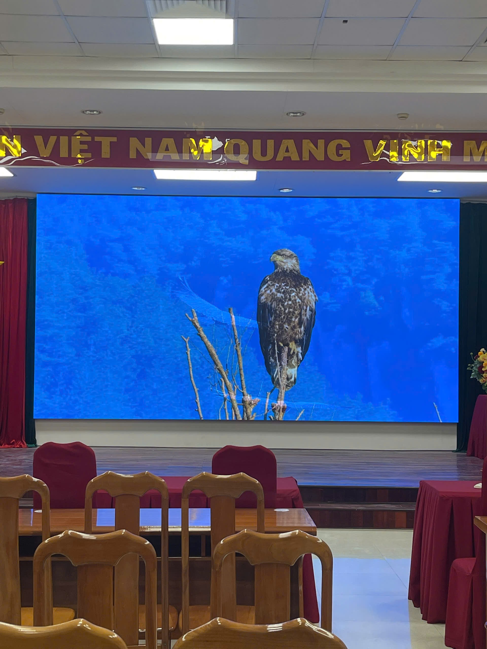 Công nghệ LED hiện đại: Cho độ sáng cao, màu sắc trung thực, giúp không gian hội trường trở nên sang trọng và chuyên nghiệp hơn hẳn so với máy chiếu truyền thống.